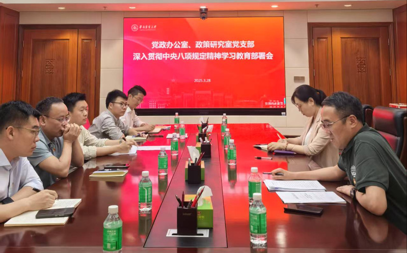 会议强调,党政办公室、政策研究室作为学校决策部署高效落实的“中枢”部门,承担着统筹协调、参谋助手、督促检查和服务保障等重要职责,要始终以高度的政治自觉推进深入贯彻中央八项规定精神学习教育落地见效。一是要统一思想认识、提高政治站位,持续加强党的创新理论武装,精准把握开展学习教育的目标任务;二是要加强组织领导、压实工作责任,不断提高“政治三力”,确保学习教育高标准高质量完成;三是要注重统筹兼顾、学用结合,做好成果转化,坚持问题导向,全面深入查找自身在贯彻中央八项规定及其实施细则精神中的薄弱环节,加快推进办公室管理服务创新工作。